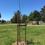 • Planting of 10 new shade trees (Catalpa speciosa) in the Park. Purpose was to provide shade to the sun-exposed, non-reserve picnic area, and add additional shade trees in the Park. LPNA worked with Our City Forest (OCF) and Americorps volunteers with support from PRNS to get the job done. PRNS established a hose coupling nearby to water trees if needed during the hot summer months until they are established. (BeautifySJ funds) Complete!